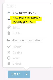 Ich skizziere hier, wie man einer ADS Gruppe Adminrechte auf dem ERA zuteilen kann. Unter Admin > Access Rights klickt man auf den Pfeil bei Users und wählt „New mapped domain security group“.