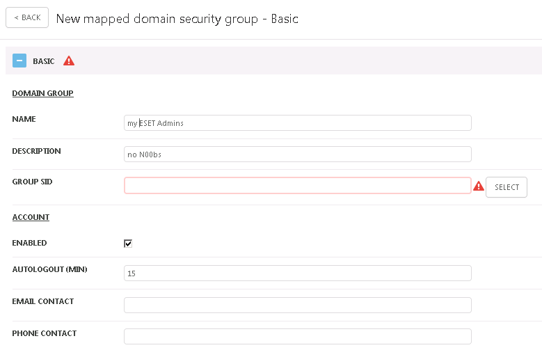 Wie immer muss ein Name vergeben werden und eine SID aus dem ADS. Wenn die Koppelung mit dem ADS erfolgreich eingerichtet wurde (vgl. weiter oben im Artikel), dann kann man nun unter „Group SID“ ADS-Gruppen auswählen.