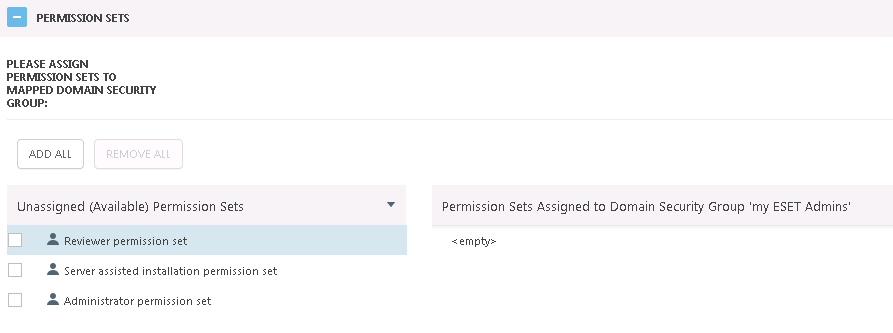 Neben dem vordefinierten ESET Administrator, kann man auch Rechte über ADS Gruppen oder Personen definieren.