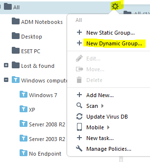 Dynamische Gruppen werden automatisch anhand von Auswahlregeln befüllt. Ändert sich die Eigenschft eines Computers, so ändert sich auch dynamisch die Gruppenmitgliedschaft. Ich erkläre das anhand einer dynamischen Gruppe für Computer, die weder ESET Endpoint, noch das File Security Produkt installiert haben.