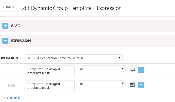 Ein Weiters Beispiel für eine dynamische Gruppe ist die Zuordnung anhand des Betriebsystems. Die Erstellung des Templates erfolgt wie oben, jedoch mit anderen Parametern.