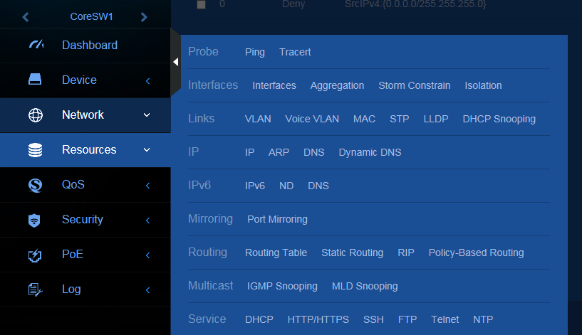 Über Network > ACLs > IPv4 gelangt man zu IP gebundenen ACL.