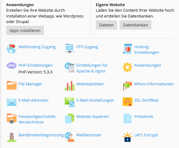 Im Hauptfenster selektiert man den gewünschten Domain Namen und sieht nun unter den verfügbaren Anwendungen eine Let’s Encrypt App.