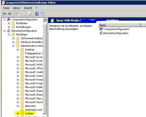 Benutzerkonfiguration > Administratove Vorlagen > System