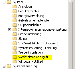 Unterhalb von System befindet sich der Knoten Wechselmedienzugriff.