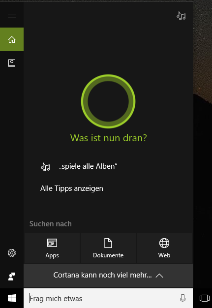 Besonders unerfreulich war, dass Cortana fest in die Suchleiste integriert wurde und sich bei jeder Suchaktion anbiederte. Das war schon damals mit Clippy (im deutschen Karl Klammer) unerträglich. „Frag mich etwas“. Das klang für mich jedesmal so ein bisschen wie die Ruf-mich-an-Domina aus der Fernsehwerbung nach Mitternacht. Danke, aber nein-Danke!