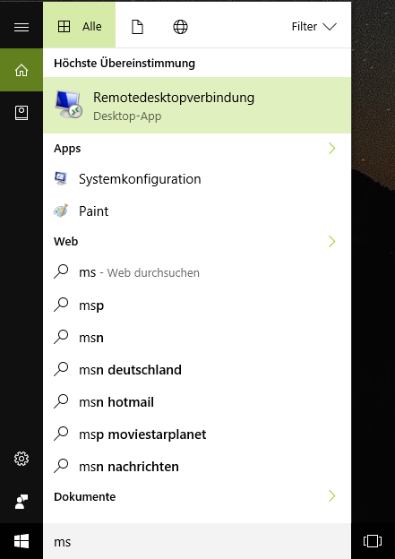 Die Suchleiste brauche ich für die lokale Suche nach Programmen oder Dateien. Keineswegs möchte ich im Web suchen. Bei der Suche nach z.B. dem Remote-Desktop Client (MSTSC) werden einem schon nach den ersten beiden Zeichen MSN Webseiten angeboten.