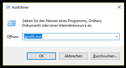 Zunächst muss der Editor für lokale Gruppenrichtlinien geöffnet werden. Wer ihn nicht von Cortana im Web suchen lassen möchte, tippt [Windows] + [R] und gibt den Namen gpedit.msc ein.