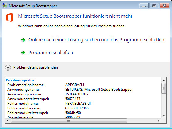 Microsoft Setup Bootstrapper funktioniert nicht mehr
